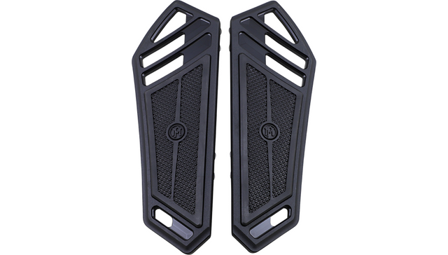 The Superlight Floorboard - Black Ops by Performance Machine is a premium set of motorcycle floorboards designed to provide improved comfort and style for riders. The "Black Ops" designation indicates a sleek, blacked-out finish that is both stylish and versatile, and is sure to complement the look of a wide range of motorcycle styles and color schemes.