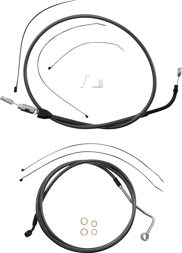 • Kit includes throttle and idle cables of throttle-by-wire extensions, clutch cable or hydraulic clutch line, brake lines, copper crush washers, hardware, and any necessary switch wiring of turn signal extension, unless otherwise noted