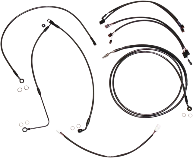 - Kit includes throttle and idle cables of throttle-by-wire extensions, clutch cable or hydraulic clutch line, brake lines, copper crush washers, hardware, and any necessary switch wiring of turn signal extension, unless otherwise noted