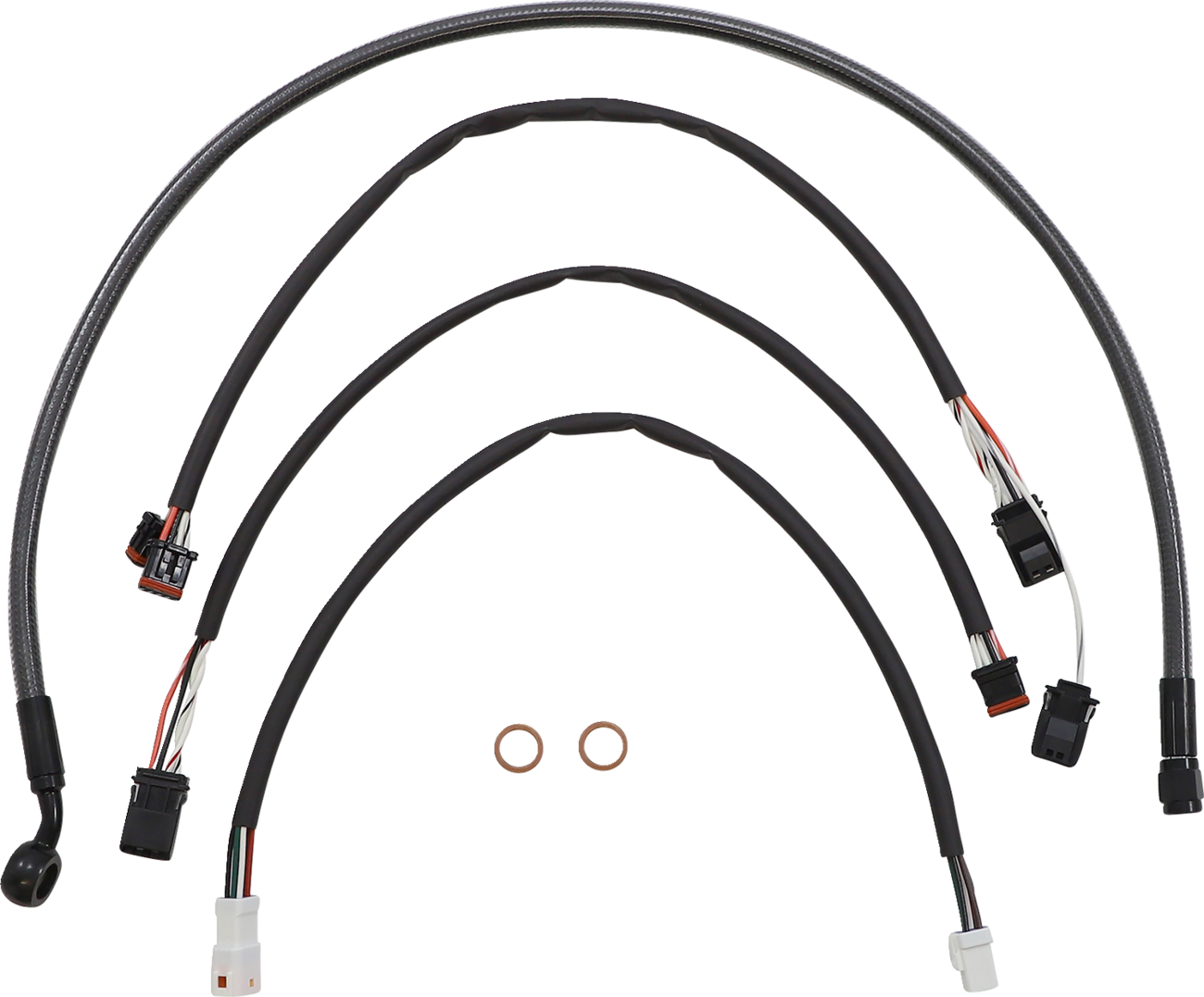 - Kit includes throttle and idle cables of throttle-by-wire extensions, clutch cable or hydraulic clutch line, brake lines, copper crush washers, hardware, and any necessary switch wiring of turn signal extension, unless otherwise noted