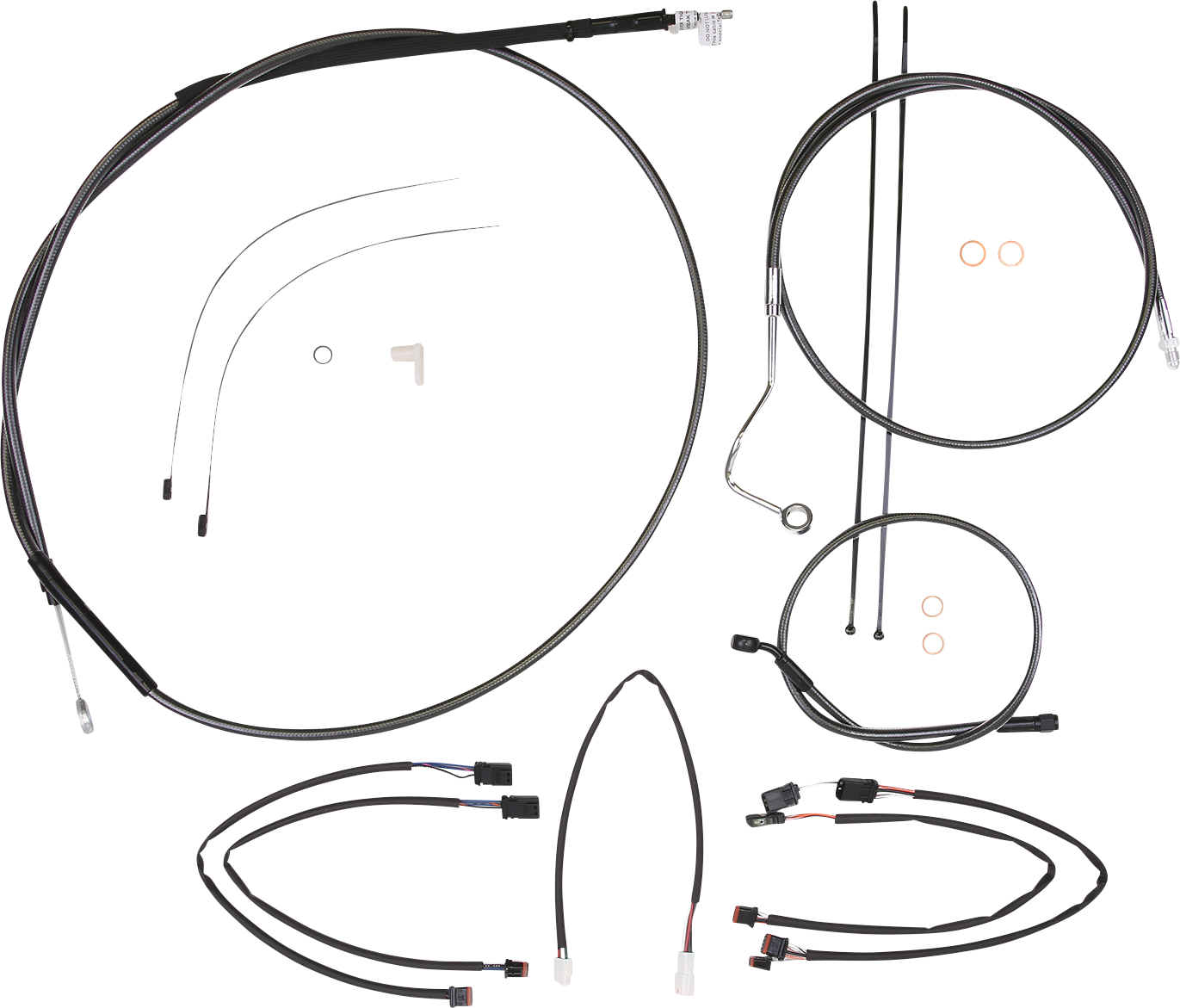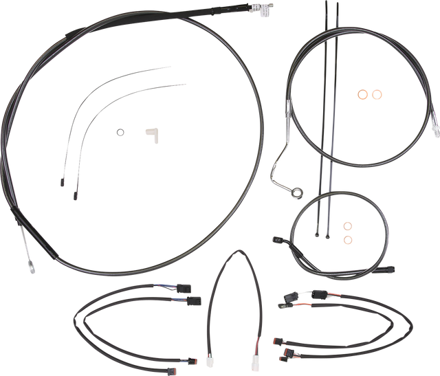 - Kit includes throttle and idle cables of throttle-by-wire extensions, clutch cable or hydraulic clutch line, brake lines, copper crush washers, hardware, and any necessary switch wiring of turn signal extension, unless otherwise noted