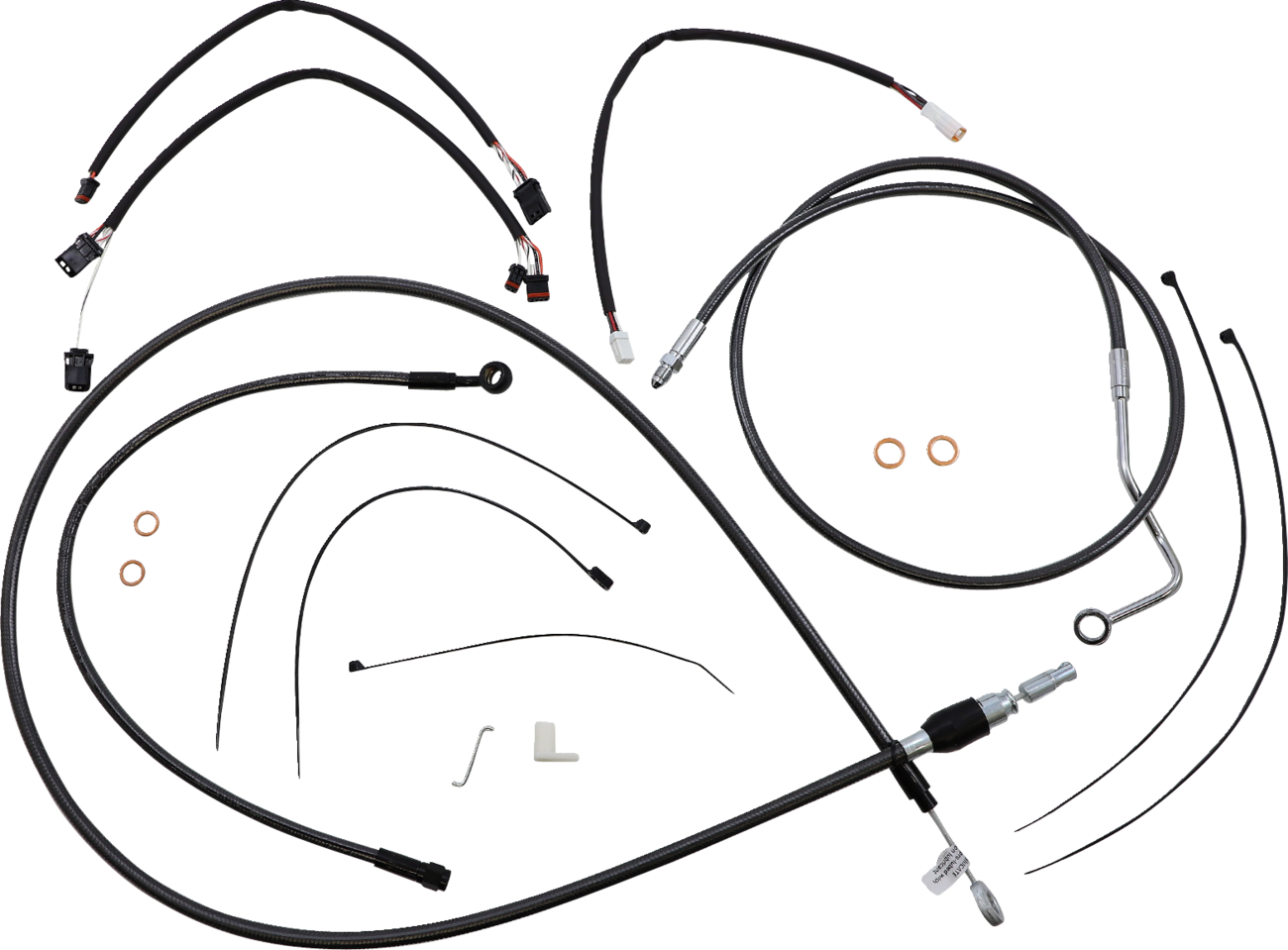 - Kit includes throttle and idle cables of throttle-by-wire extensions, clutch cable or hydraulic clutch line, brake lines, copper crush washers, hardware, and any necessary switch wiring of turn signal extension, unless otherwise noted