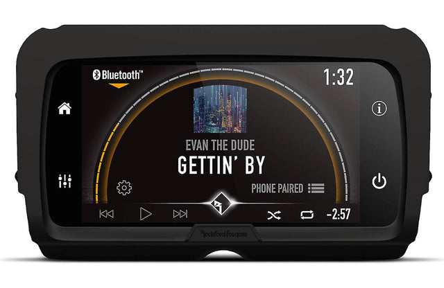 Rockford Fosgate's PMX-HD14 is a big-screen digital media receiver that's optimized for the open road. Designed to fit select 2014-up Harley-Davidson touring bikes, it fits the factory mounting brackets and plugs right in to your Harley's wiring harness. This direct-fit radio sports cool features like built-in Bluetooth connectivity, SiriusXM® satellite radio capability, and (most importantly) Apple® CarPlay® control.