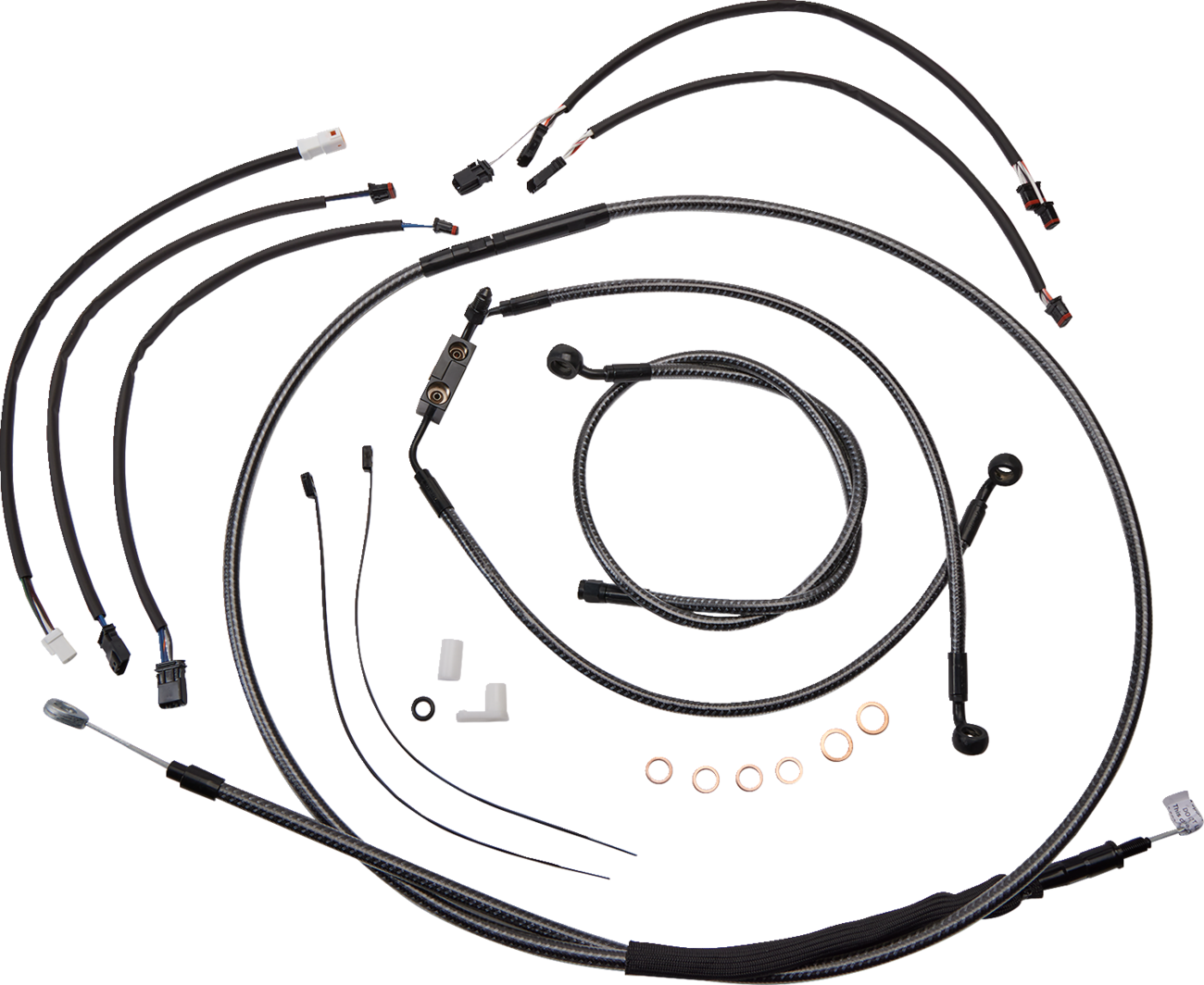 - Kit includes premium brake lines, clutch cable or hydraulic clutch line, throttle and idle cables or throttle-by-wire extensions, hardware, and fully terminated or plug-and-play switch and turn signal extensions