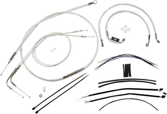 - Kit includes throttle and idle cables of throttle-by-wire extensions, clutch cable or hydraulic clutch line, brake lines, copper crush washers, hardware, and any necessary switch wiring of turn signal extension