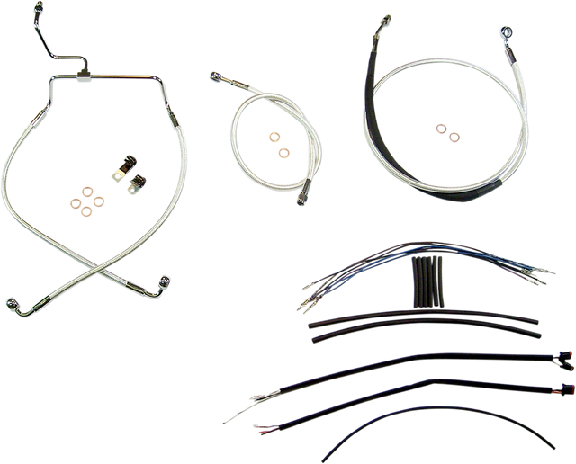 - Kit includes throttle and idle cables of throttle-by-wire extensions, clutch cable or hydraulic clutch line, brake lines, copper crush washers, hardware, and any necessary switch wiring of turn signal extension
