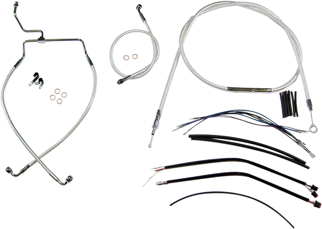 - Kit includes throttle and idle cables of throttle-by-wire extensions, clutch cable or hydraulic clutch line, brake lines, copper crush washers, hardware, and any necessary switch wiring of turn signal extension
