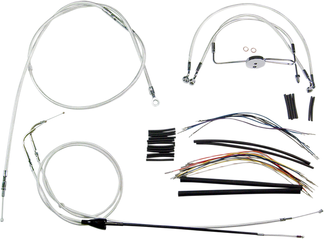 - Kit includes throttle and idle cables of throttle-by-wire extensions, clutch cable or hydraulic clutch line, brake lines, copper crush washers, hardware, and any necessary switch wiring of turn signal extension