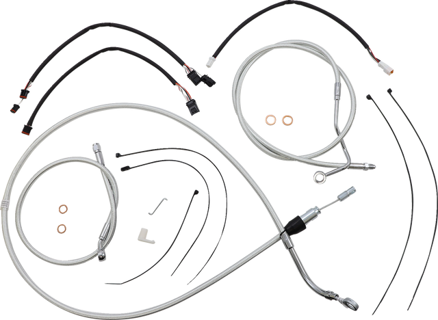 - Kit includes throttle and idle cables of throttle-by-wire extensions, clutch cable or hydraulic clutch line, brake lines, copper crush washers, hardware, and any necessary switch wiring of turn signal extension