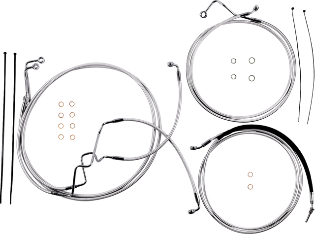 - Kit includes throttle and idle cables of throttle-by-wire extensions, clutch cable or hydraulic clutch line, brake lines, copper crush washers, hardware, and any necessary switch wiring of turn signal extension