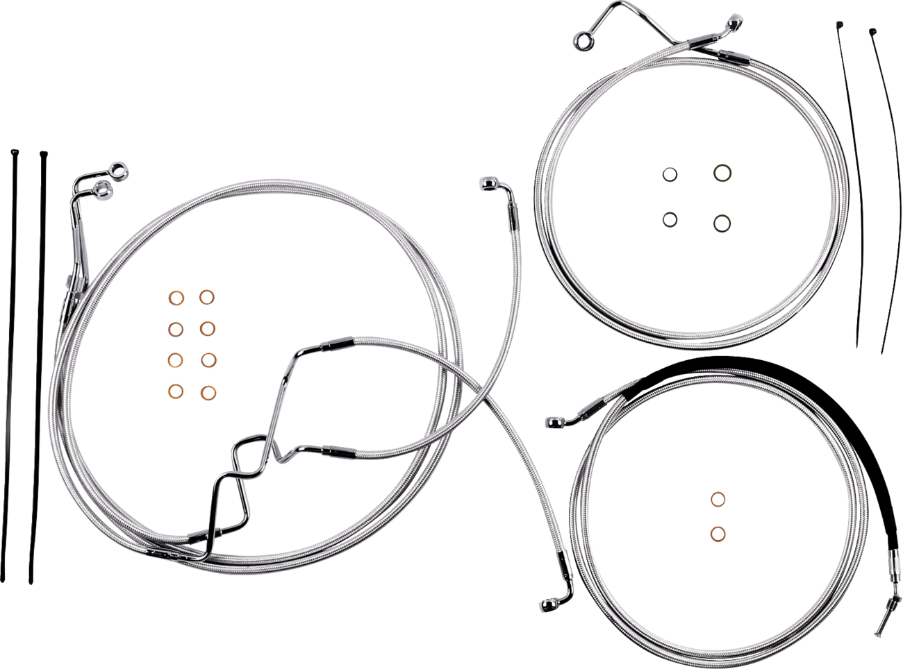 - Kit includes throttle and idle cables of throttle-by-wire extensions, clutch cable or hydraulic clutch line, brake lines, copper crush washers, hardware, and any necessary switch wiring of turn signal extension