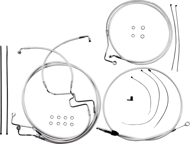 - Kit includes throttle and idle cables of throttle-by-wire extensions, clutch cable or hydraulic clutch line, brake lines, copper crush washers, hardware, and any necessary switch wiring of turn signal extension