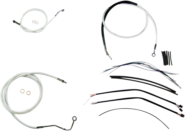 • Kit includes throttle and idle cables of throttle-by-wire extensions, clutch cable or hydraulic clutch line, brake lines, copper crush washers, hardware, and any necessary switch wiring of turn signal extension