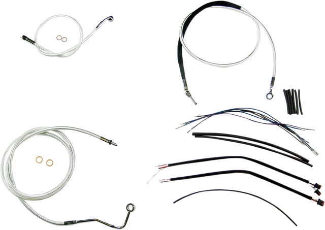 • Kit includes throttle and idle cables of throttle-by-wire extensions, clutch cable or hydraulic clutch line, brake lines, copper crush washers, hardware, and any necessary switch wiring of turn signal extension