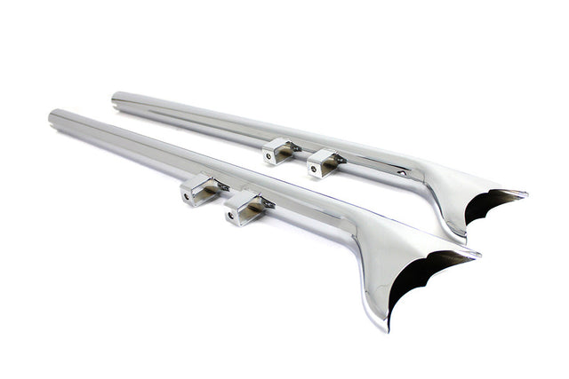 Chrome straight fishtails are 36" long with a 1-7/8" diameter and features scalloped ends. Utilizes channel brackets.