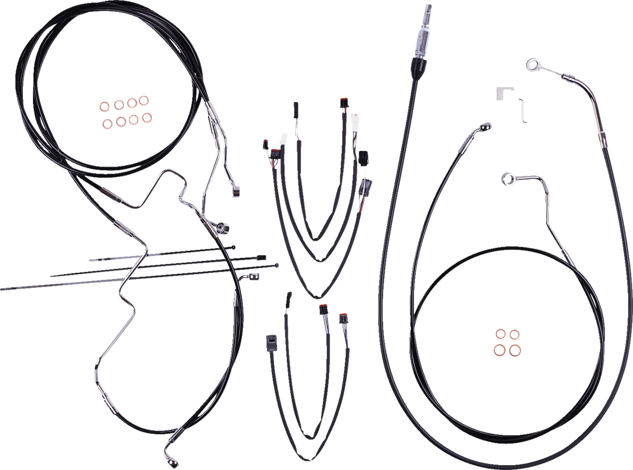- Kits include throttle and idle cables or fully terminated throttle-by-wire extensions, clutch cable or hydraulic clutch line, XR DOT brake lines, copper crush washers, hardware, and fully terminated turn signal and switch wiring extensions