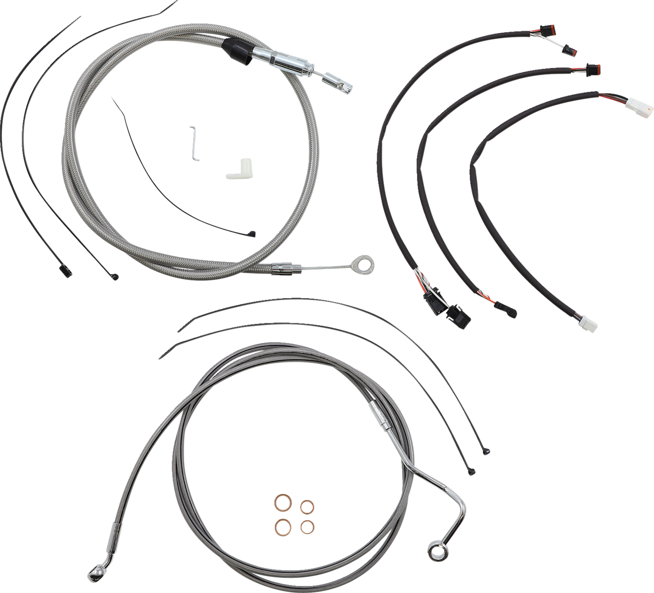 - Kits include throttle and idle cables or fully terminated throttle-by-wire extensions, clutch cable or hydraulic clutch line, XR DOT brake lines, copper crush washers, hardware, and fully terminated turn signal and switch wiring extensions