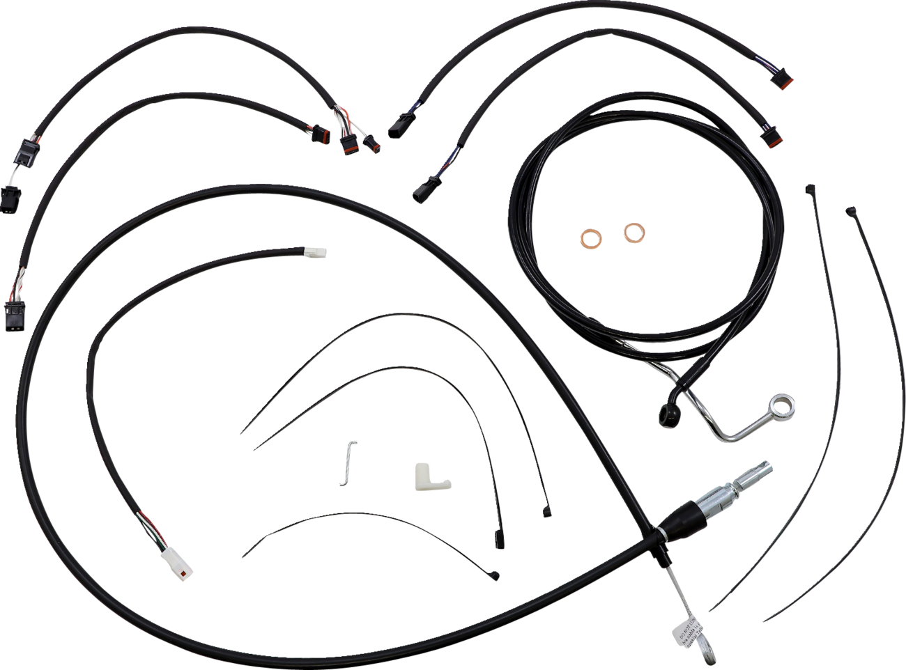 - Kits include throttle and idle cables or fully terminated throttle-by-wire extensions, clutch cable or hydraulic clutch line, XR DOT brake lines, copper crush washers, hardware, and fully terminated turn signal and switch wiring extensions
